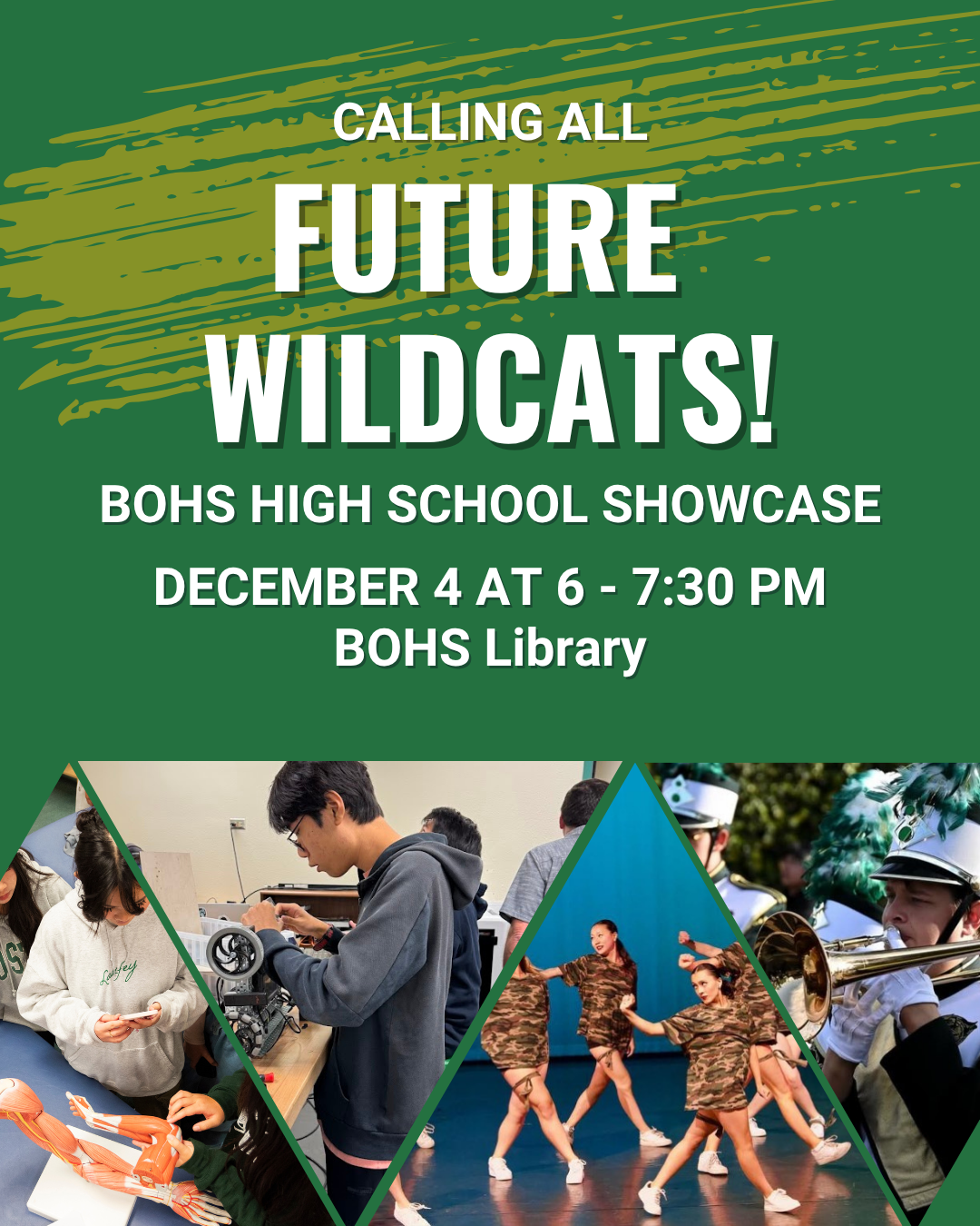 During the event, prospective students and famiiles will learn about BOHS academic programs, performing arts and athletic offerings and will receive information to prepare for their experience as a Wildcat.