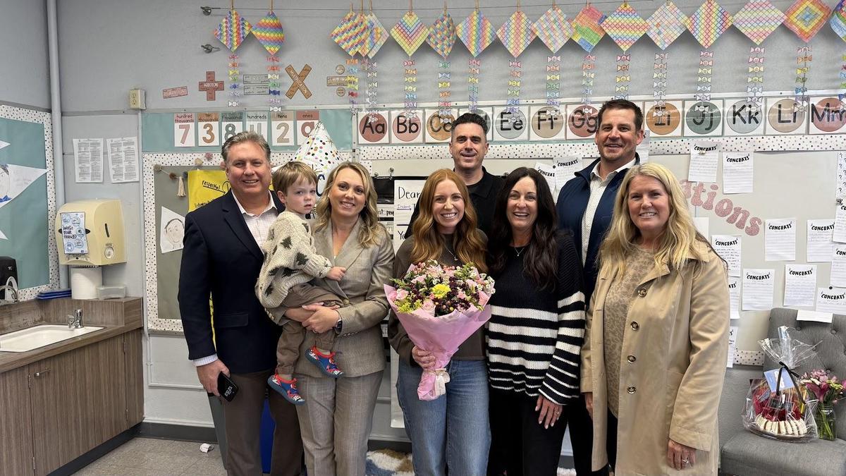 Collins was surprised with the announcement on Feb. 19 in her 3rd grade classroom, with her students and family present to share in the special moment.